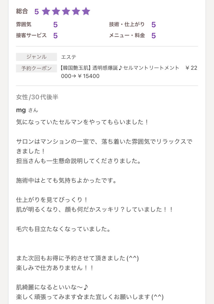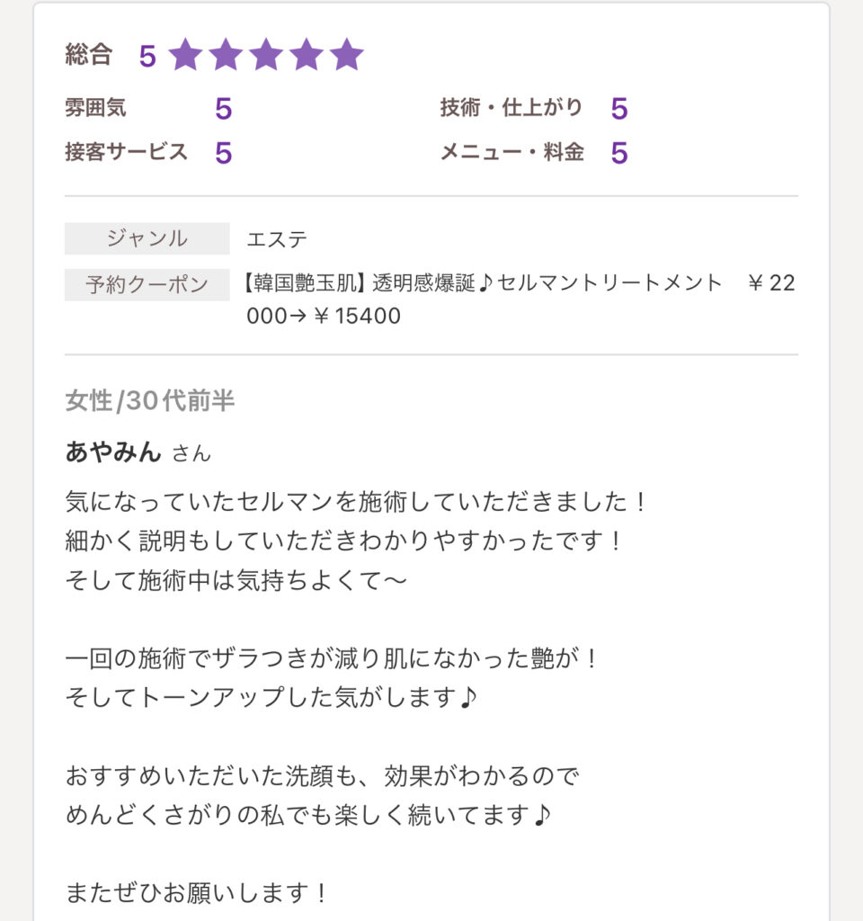 個人差はありますが、ホームケアと組み合わせてしっかり続けていただければ、早い方では1ヶ月ほどで「肌の変化」を感じる方も多いです。