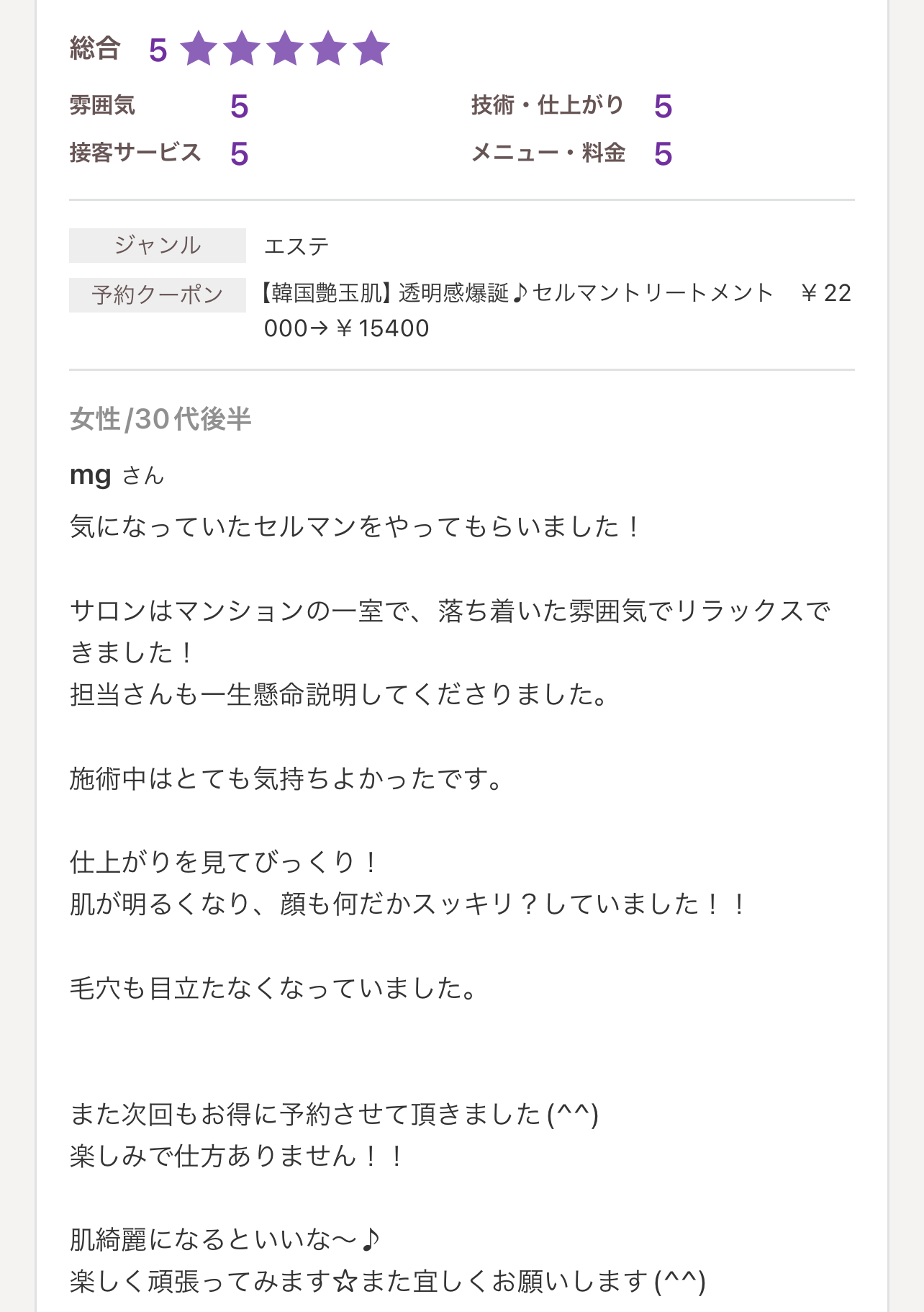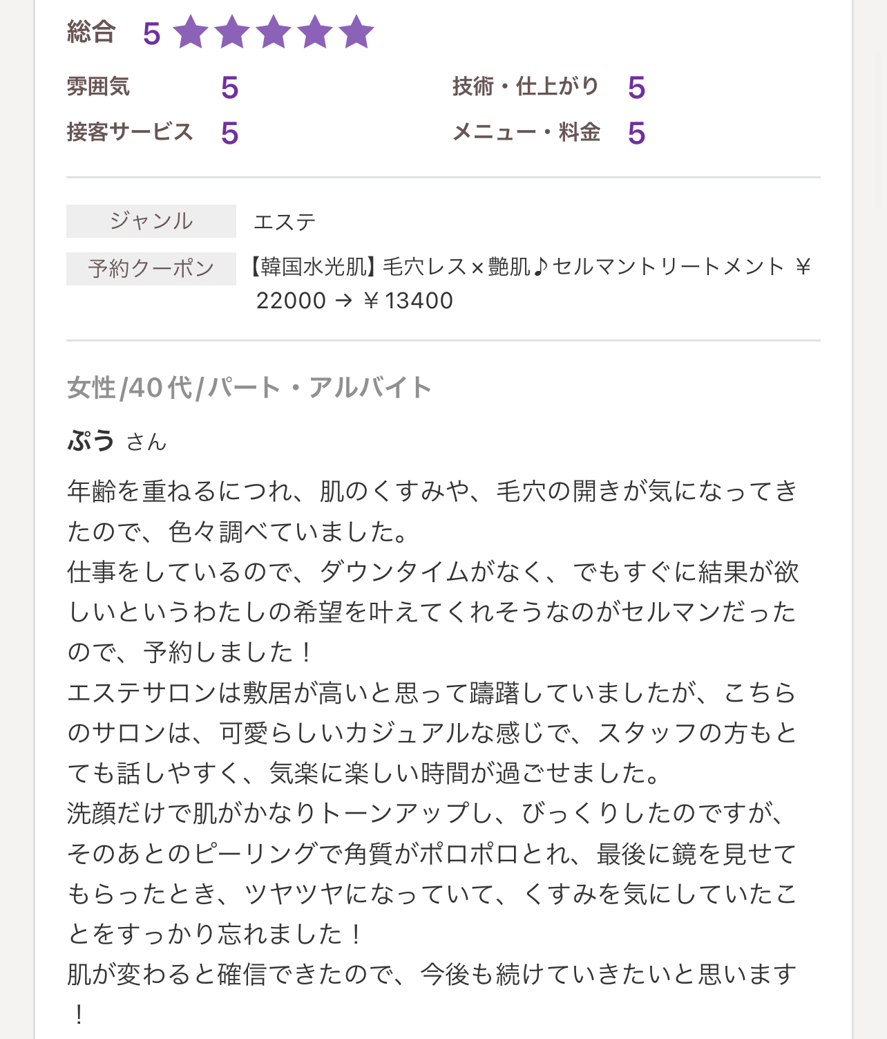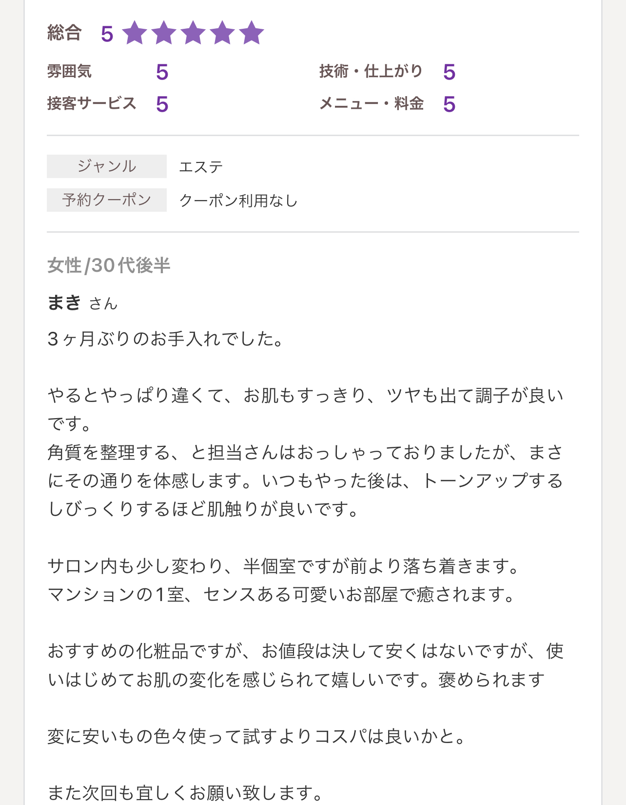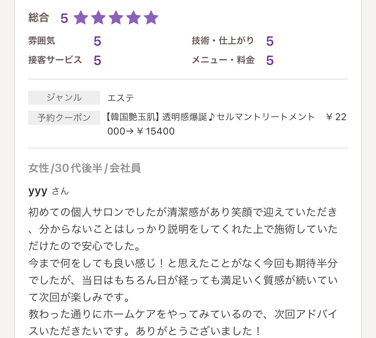 個人差はありますが、ホームケアと組み合わせてしっかり続けていただければ、早い方では1ヶ月ほどで「肌の変化」を感じる方も多いです。
